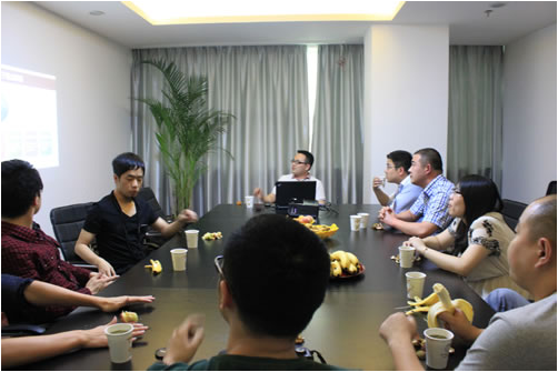 随后,就参观过程,大家在捷点公司会议室做了一个比较简单的交流分享,期间兰董对于捷点整个现状向陈部长一行做了大概的介绍,也针对之前常山县李华书记一行探讨过的区域电商政策落实、区域电商企业抱团发展、区域电商组织(协会)的作用、区域教育基地的人才培养、电子商务企业的纳税状况等话题展开了轻松愉快的交流分享。期间,丽水职业技术学院的刘亮科长针对高校与电子商务人才培养模式也作了深入剖析,并邀请兰董前往丽水职业技术学院给学生授课。